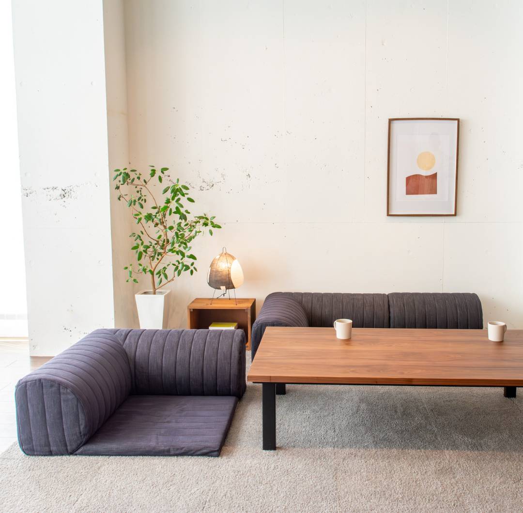 ローソファのコーディネート提案帳。今回は、野暮ったくならない!モダンでおしゃれなローソファ&こたつのコーディネ...
